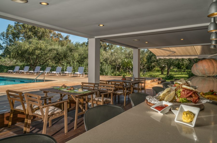 Your holiday is complimented with a great food experience too: our 2018 awarded Eucalyptos restaurant, offering Farm to Table dining based on old Zakynthian recipes, as well as our Half Board menu and our daytime cuisine are designed with you in mind, using local goods, high quality products and our organic produce!