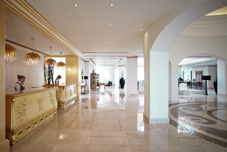 Laguna features 351 luxurious rooms, 7 restaurants and 5 bars, including the new Champagne, Wine & Sushi Bar, a state-of-the-art spa, and concierge and transfer services. The golden colour of the reception desk, the handmade furnishings & the stylish decoration of the lobby, together with the warmest welcome is where your unforgettable holidays begin.