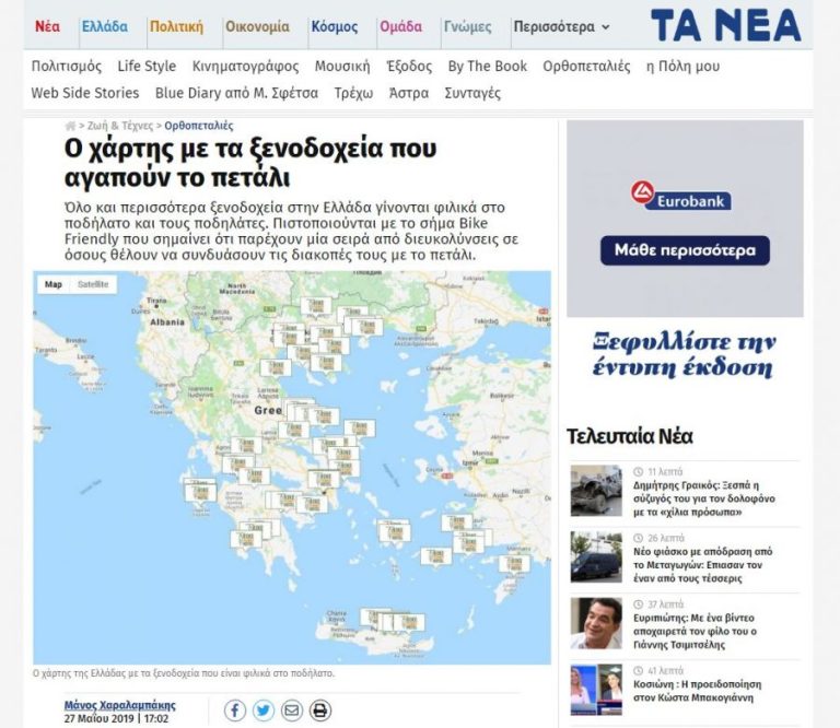 Δημοσιεύσεις του Δελτίου Τύπου για την Bike Friendly πιστοποίηση του Skiathea Villas και του “χάρτη με τα ξενοδοχεία που αγαπούν το πετάλι”
